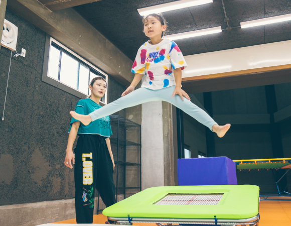 大型トランポリンを使って宙返りなどにも挑戦できます。